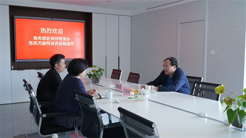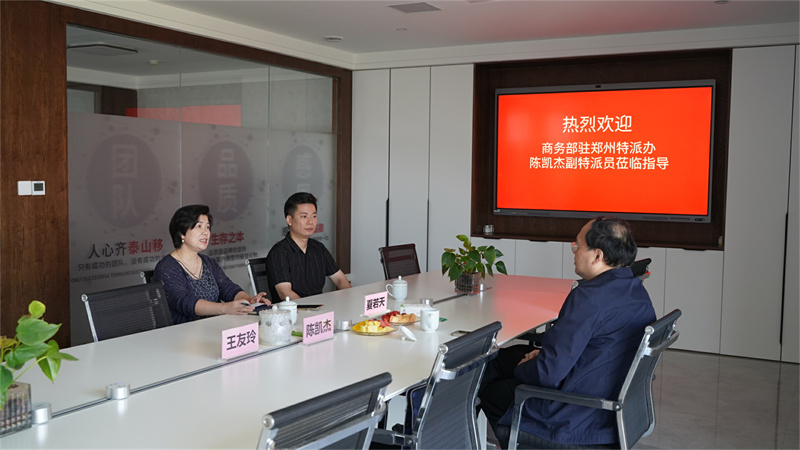 商務部駐鄭州特派員辦事處副特派員陳凱杰蒞臨天天公司調研指導