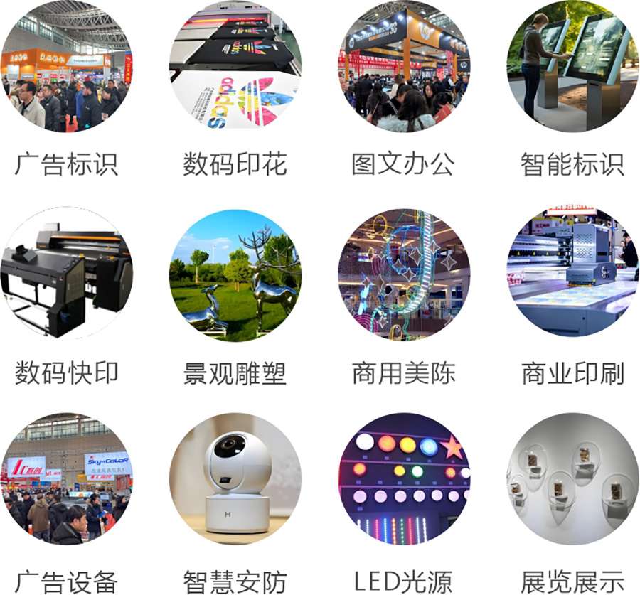 廣告材料與配套產(chǎn)品:廣告耗材、板材、貼膜、燈光源、粘結(jié)劑及配套安裝技術(shù)。
